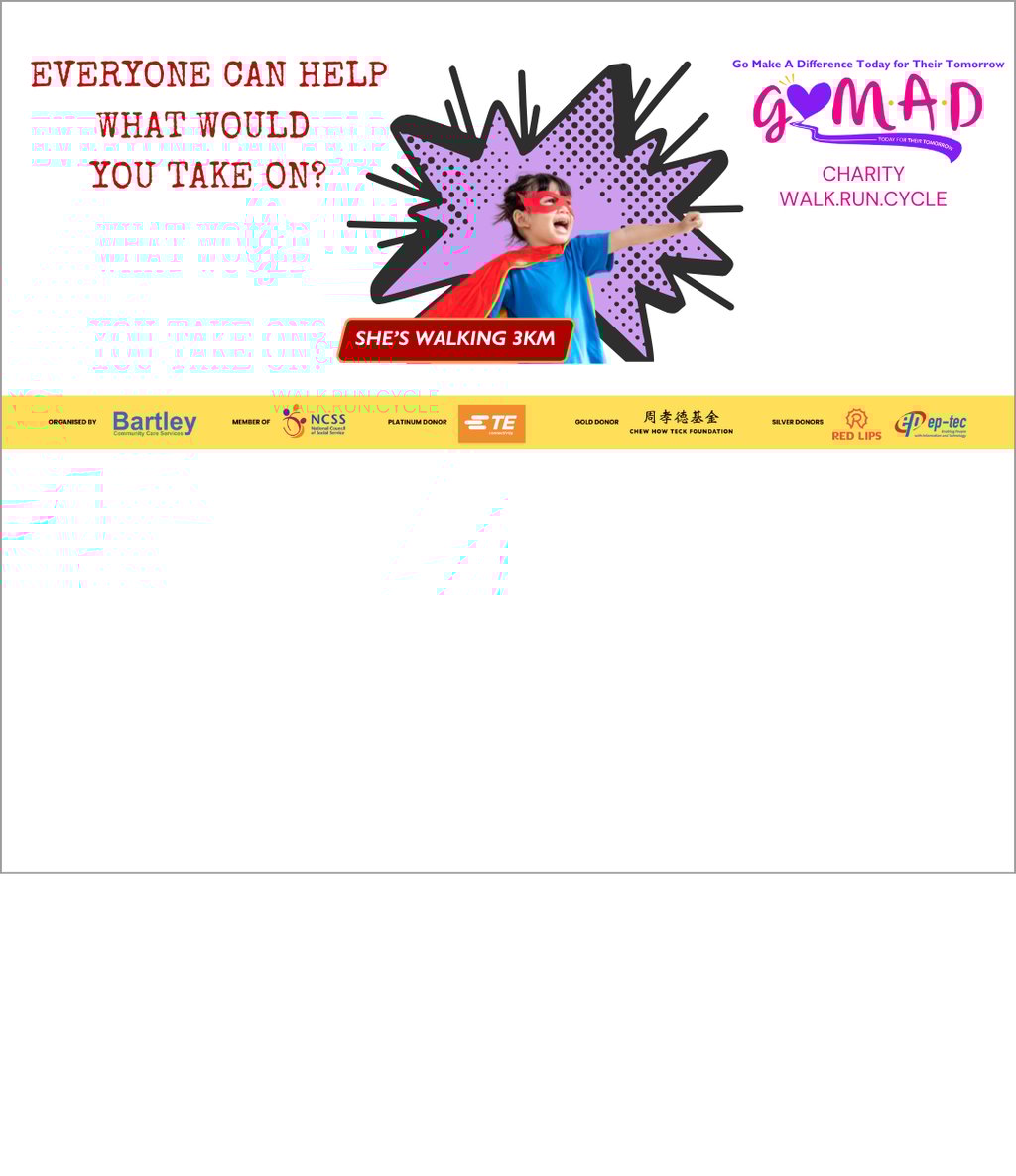 Following the success of the inaugural event in 2022, GoMAD 2023 makes its return. This annual charity race event is organized by Bartley Community Care Services (BCCS) Limited, with the aim of raising funds for the vulnerable. The event has successfully raised SGD 52,558 from peer-to-peer donations and an additional SGD 15,000 from corporate sponsors.