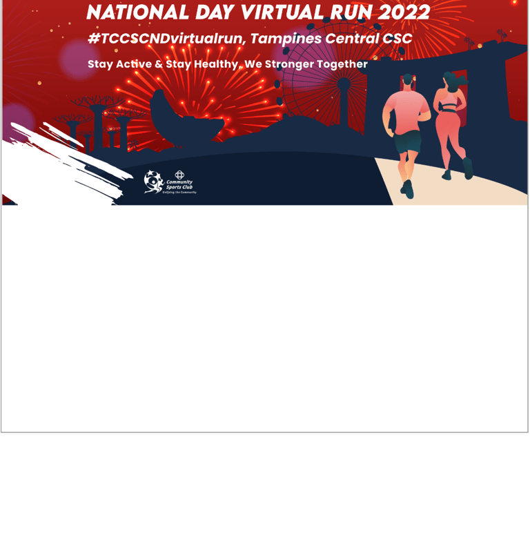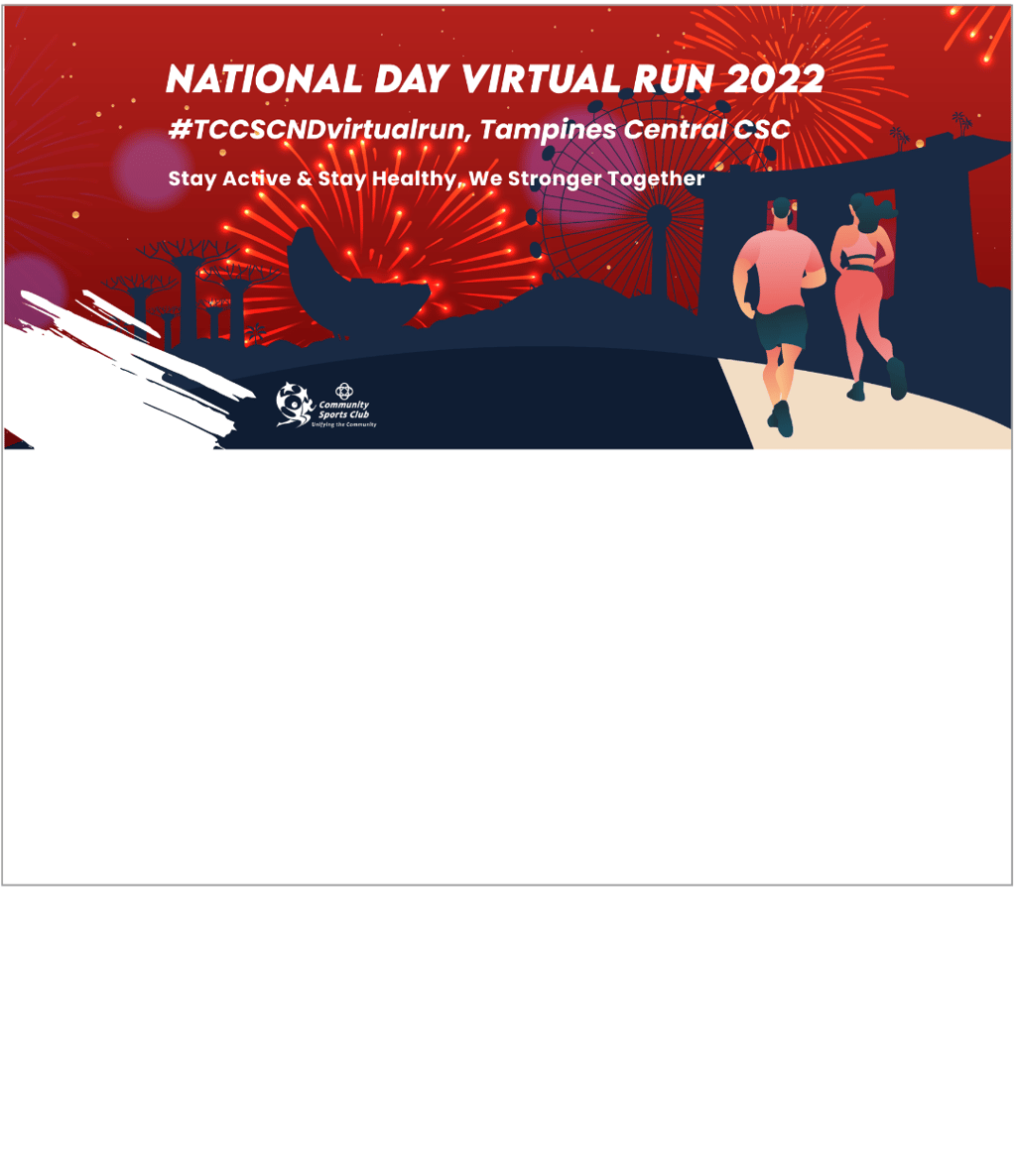 In commemoration of Singapore's 57th Birthday, Tampines Central CSC is hosting the National Day Virtual Run #TCCSCNDVIRTUALRUN to promote physical and mental health.