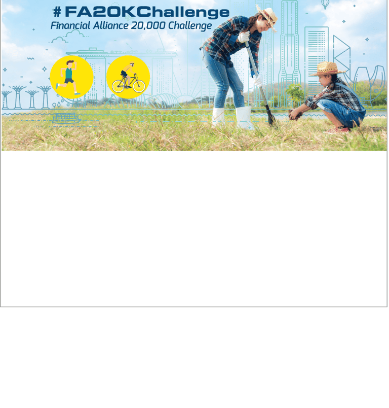 Financial Alliance celebrates its 20th Anniversary. In promoting an active and healthy lifestyle, as well as fostering camaraderie among its members, Financial Alliance Corporation has announced a challenge to Run/Jog/Cycle 20,000km and raise S$20,000 towards its 2022 CSR initiative in support of the #onemilliontrees movement.